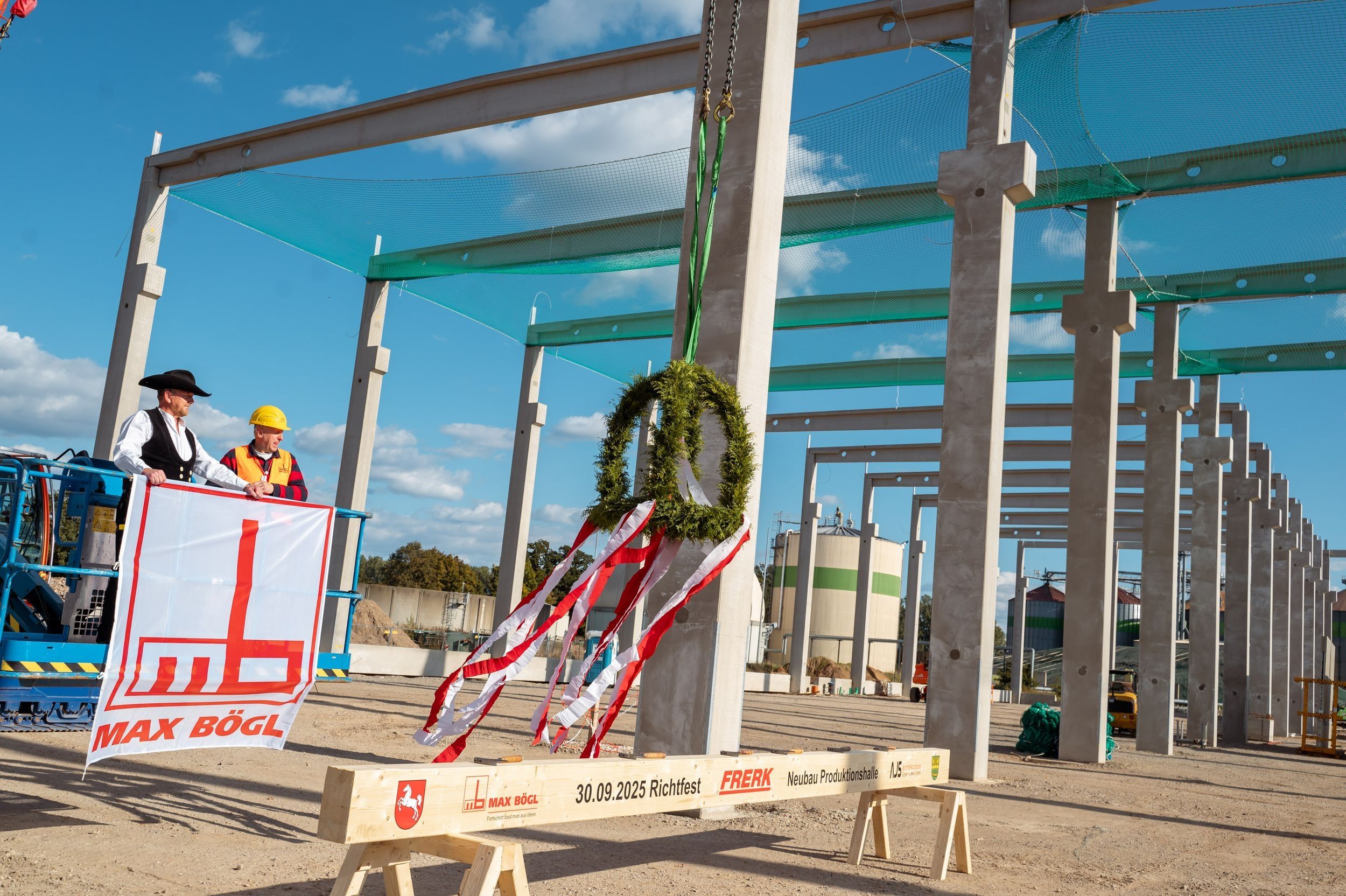 In keeping with tradition, the completion of the roof structure was celebrated with a topping-out wreath, a speech by the foreman, and the breaking of a glass for good luck. With heartfelt words of thanks to everyone involved, Managing Director Marc Hiller transitioned from the formal part of the ceremony to the FRERK Oktoberfest celebration.