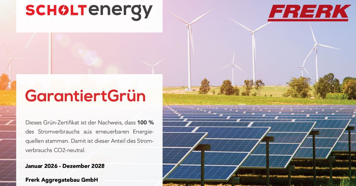 Starting this year, the headquarters of FRERK Aggregatebau GmbH in Schweringen will be fully supplied with Guaranteed Green certified electricity from Scholt Energy Germany – a European green energy mix of wind, solar, and biomass.